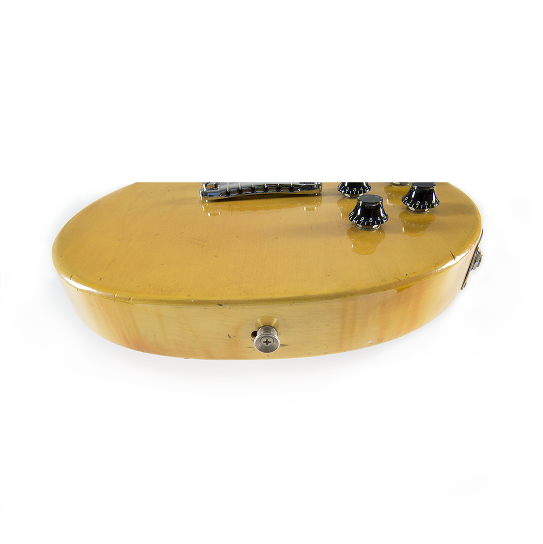 Beyond these changes made prior to the 1990s, the only alteration made to the guitar, since its last purchase, is to the nut. The original shelf nut was replaced by an Earvana Compensated Tuning Nut, to improve intonation for studio recording. This work was done by a local Athens luthier of national reputation, who also dressed the frets, patched the empty guitar-strap peg hole, and set up the guitar professionally.