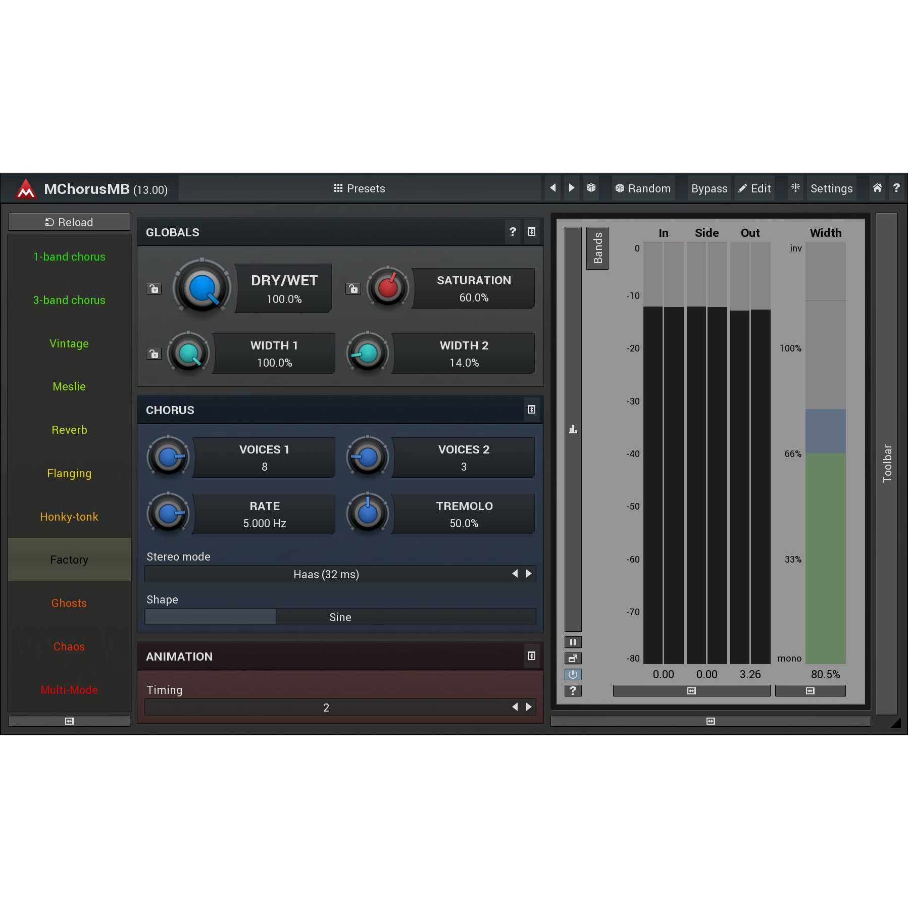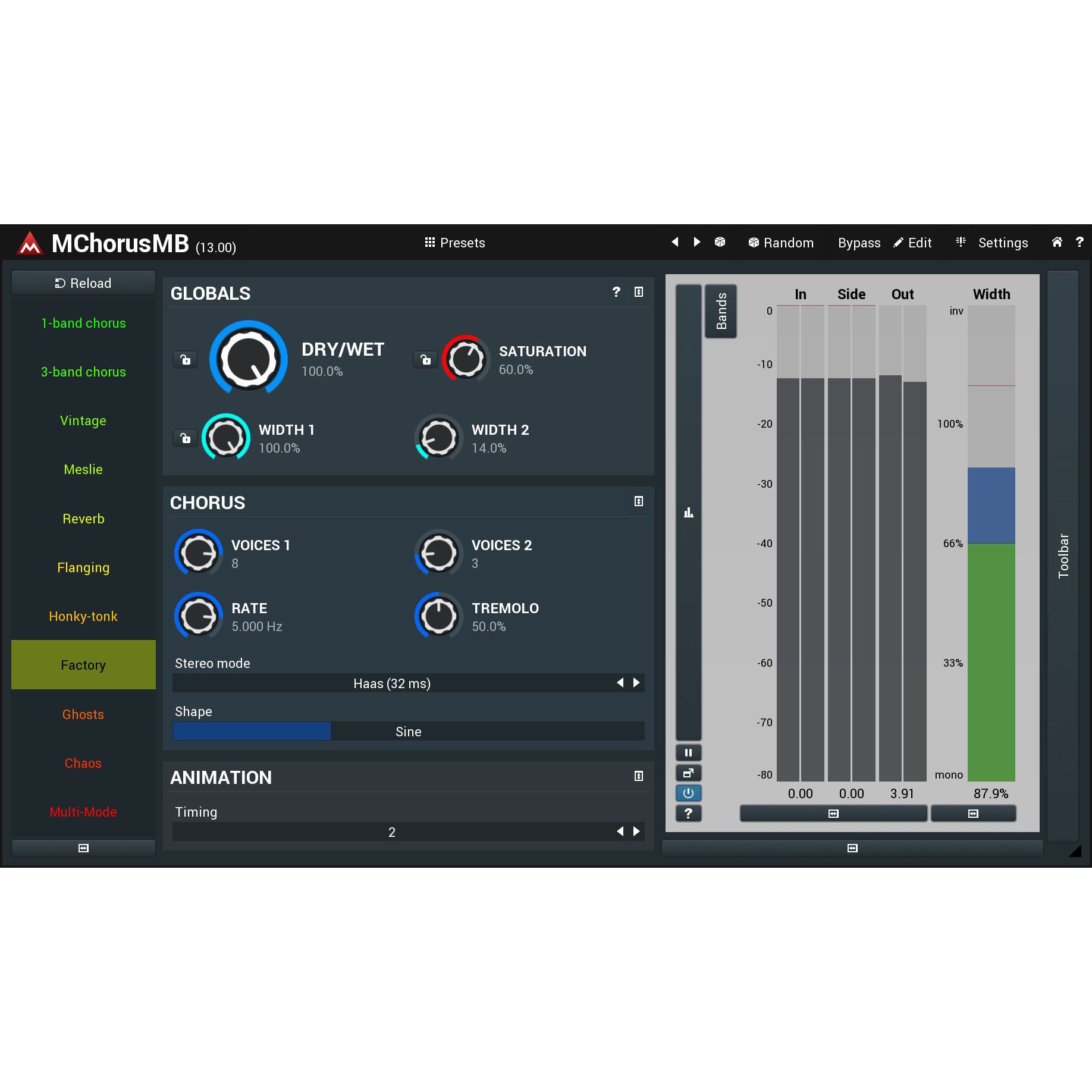 Chorus is an essential tool for guitars and keyboards to bring out space and width. MChorusMB is not only potentially the best sounding chorus effect on the market, but also the most versatile one. If you aim for an ultimate chorus with both audio quality and features, then this is the plugin is the one that you have been searching for.