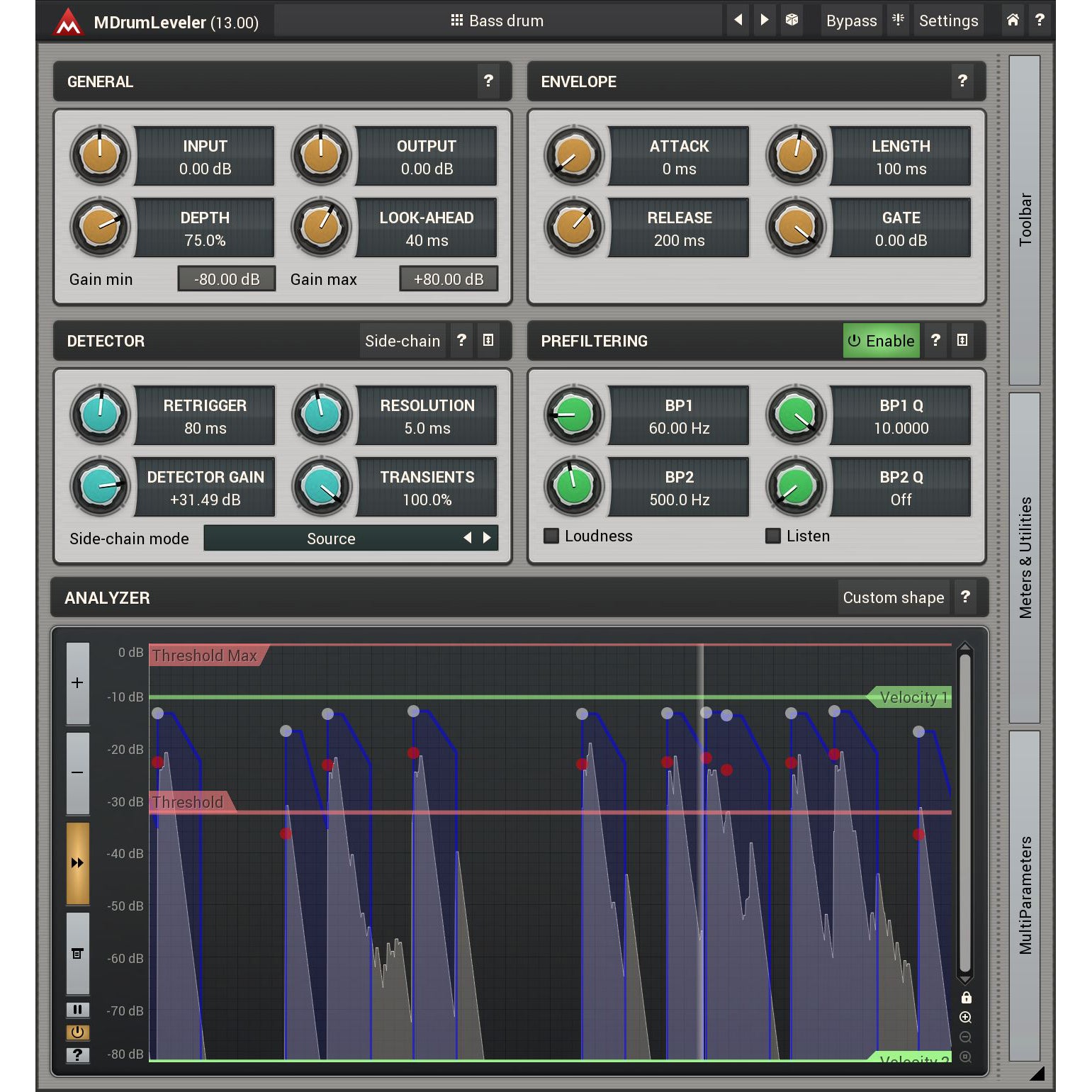MDrumLeveler is a unique tool specially designed for drums and percussive materials. It will improve the drum performances, stabilize drum hit levels, remove leakage and ambience and let you control the drum hits better than you ever could with traditional tools.