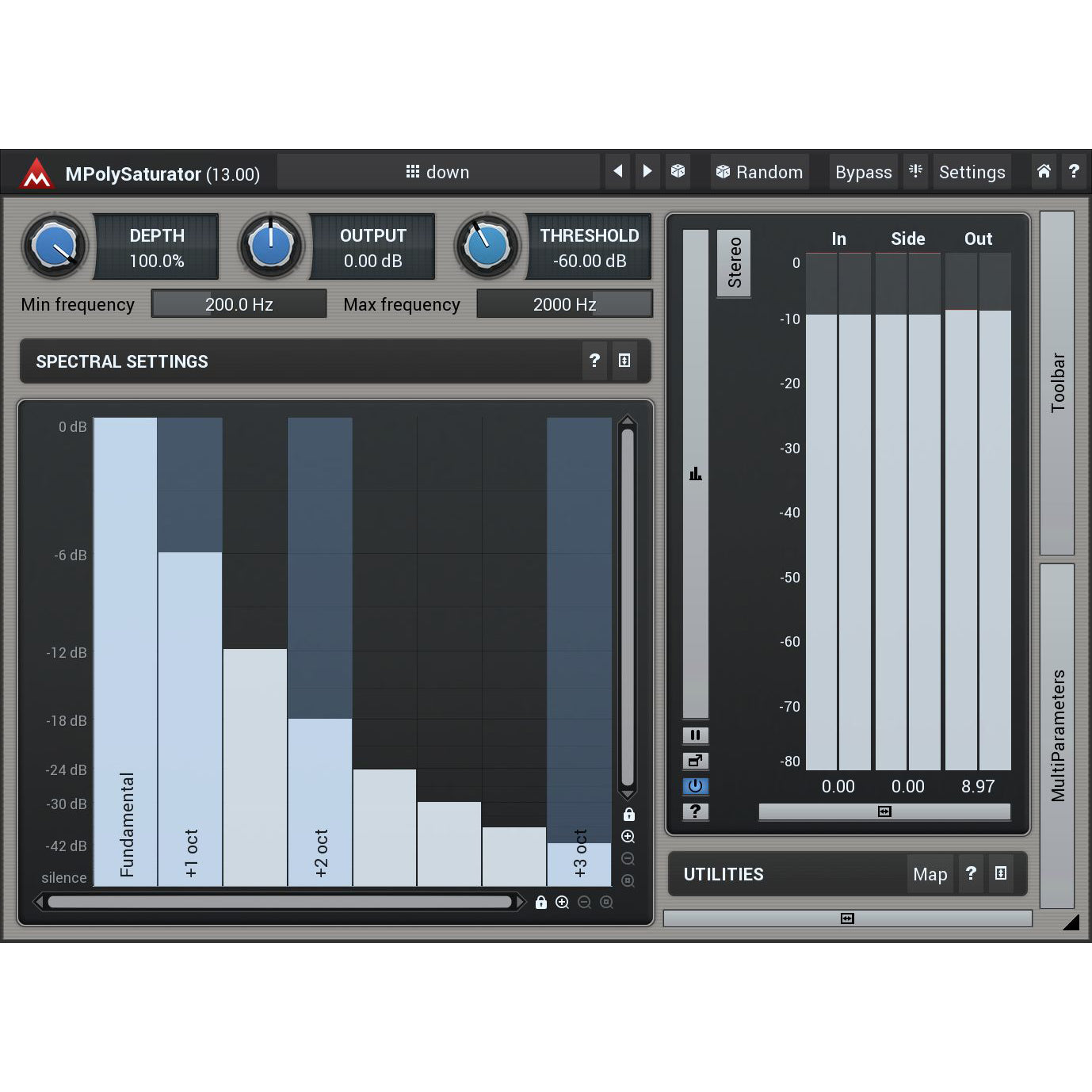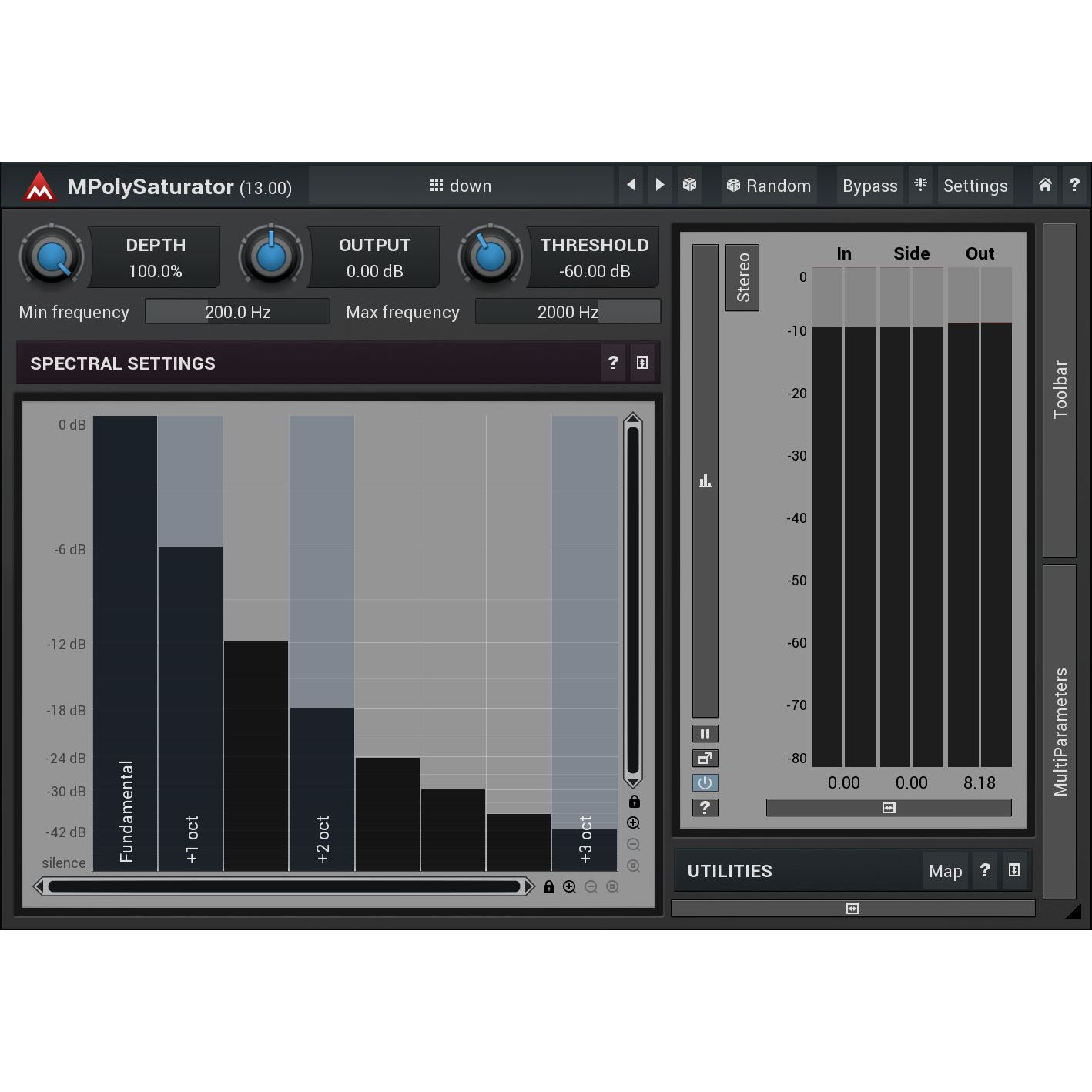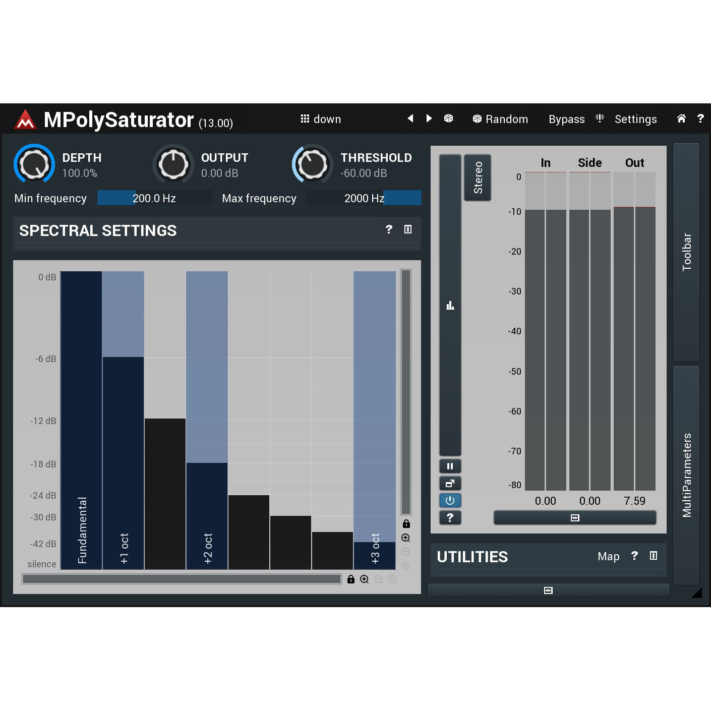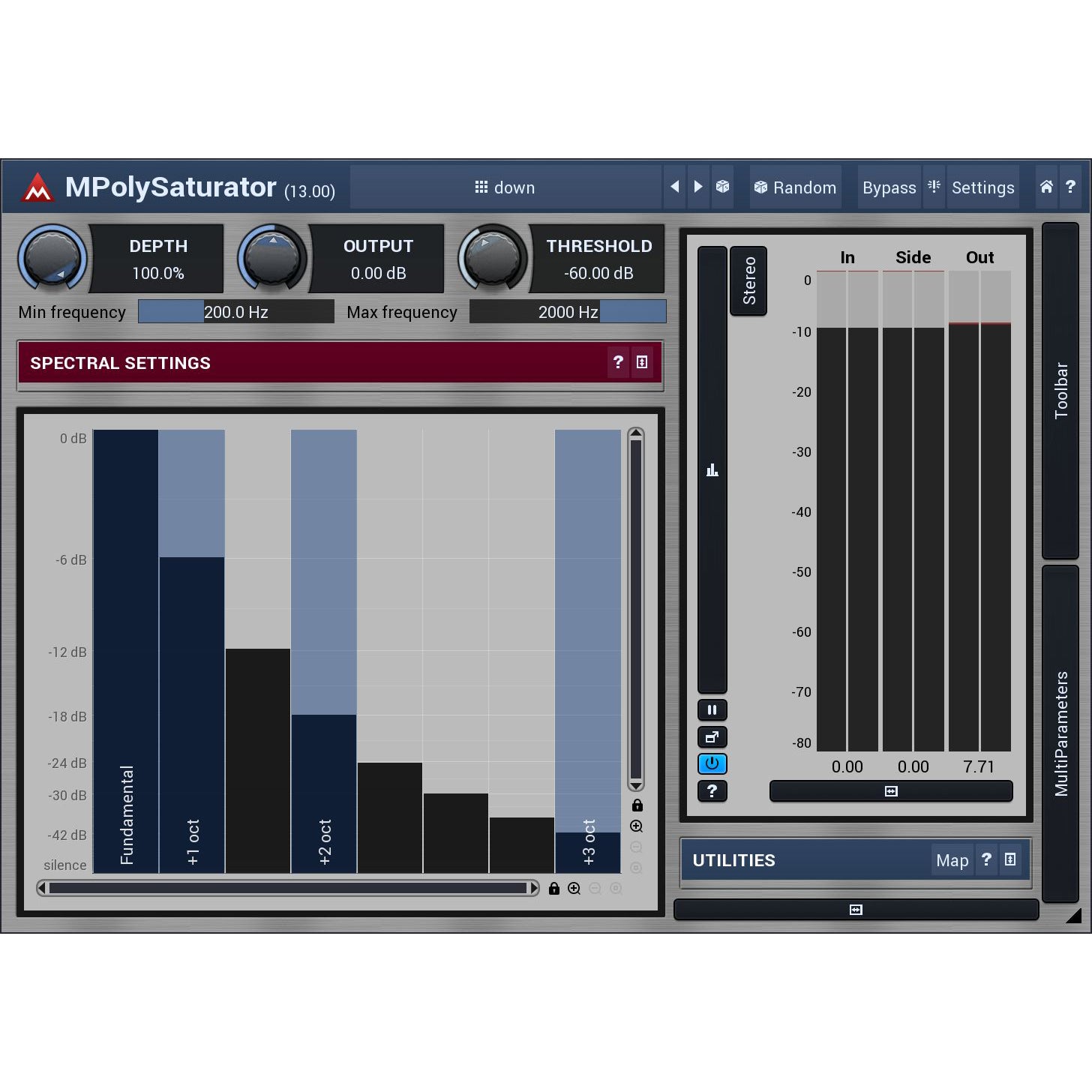 MPolySaturator is a unique spectral saturation plugin, which generates harmonics for every single frequency in your signal, making the results sound richer. But unlike classic saturation, it does not suffer from the dirtiness when processing complex signals.