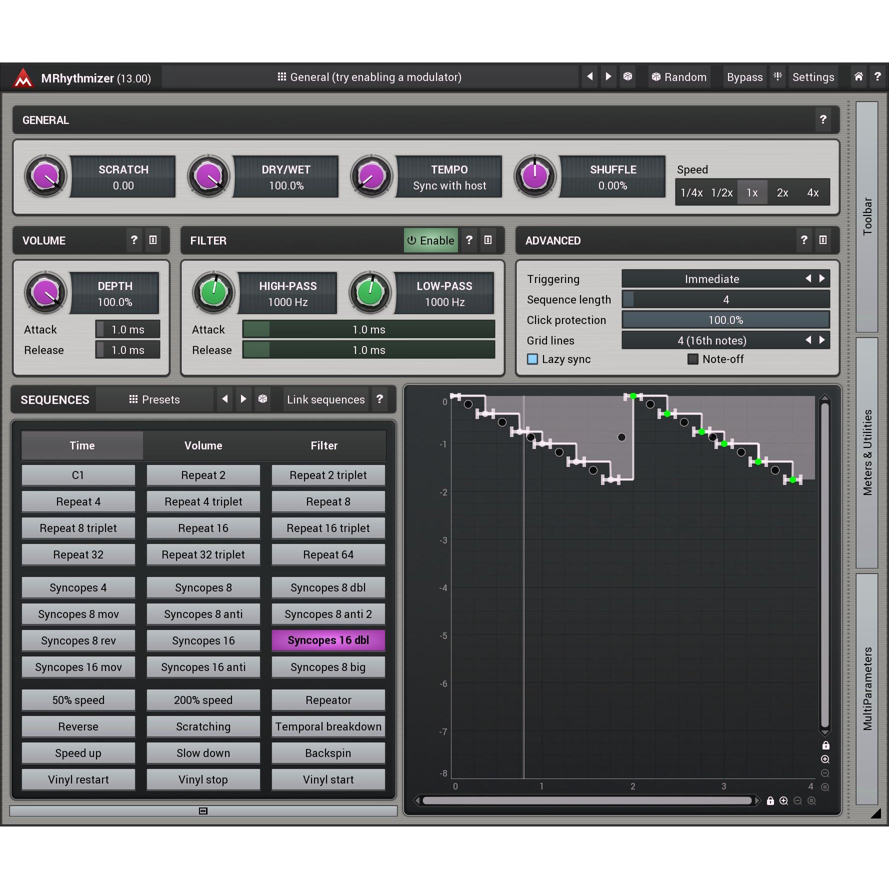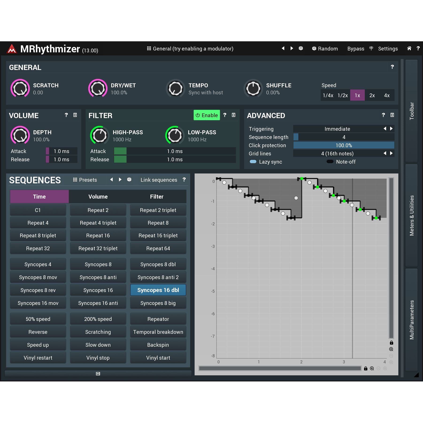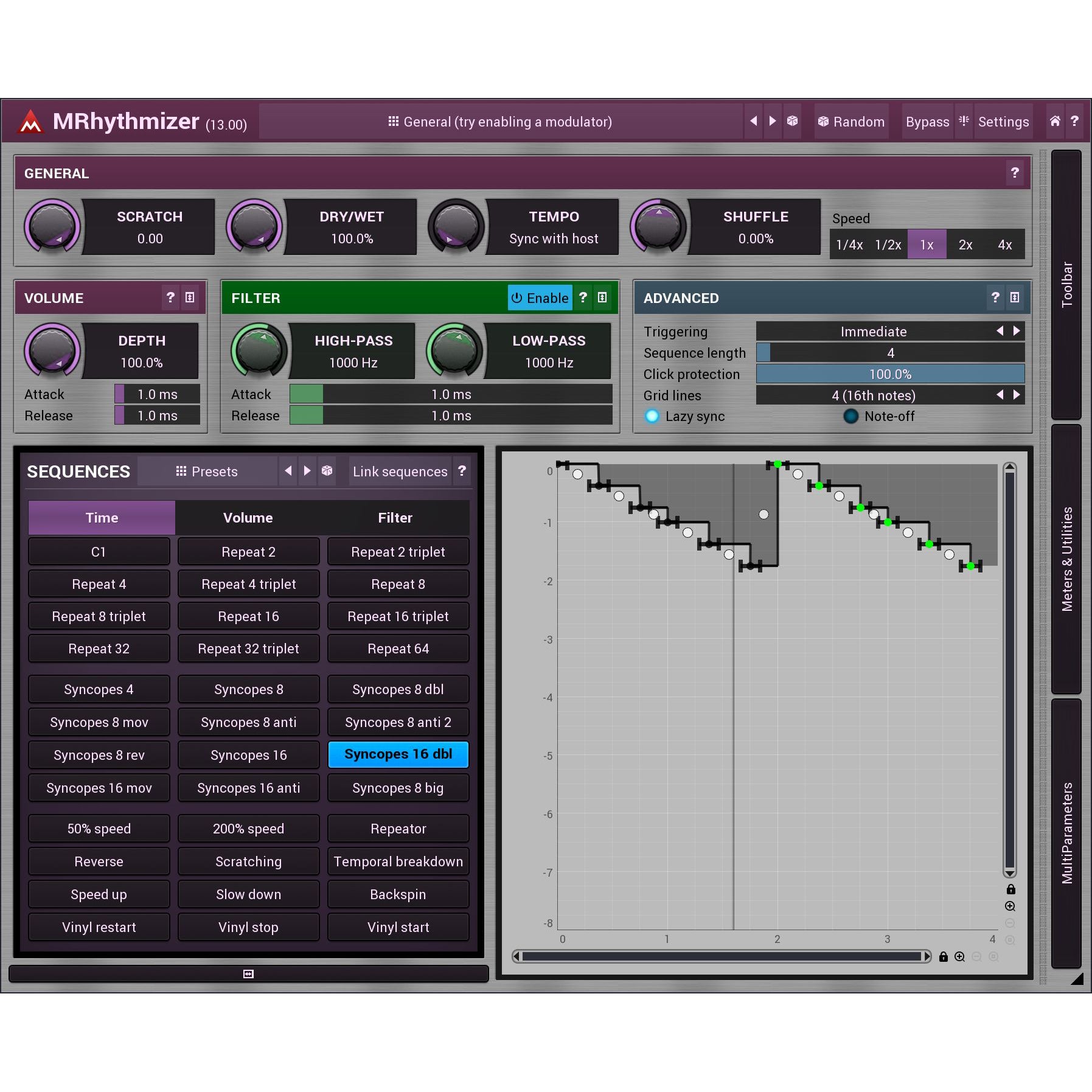 Easy-to-use scratching. We all know about scratches, but with MRhythmizer you can scratch easily using a simple slider, or you can use modulators and the plugin will do it automatically!