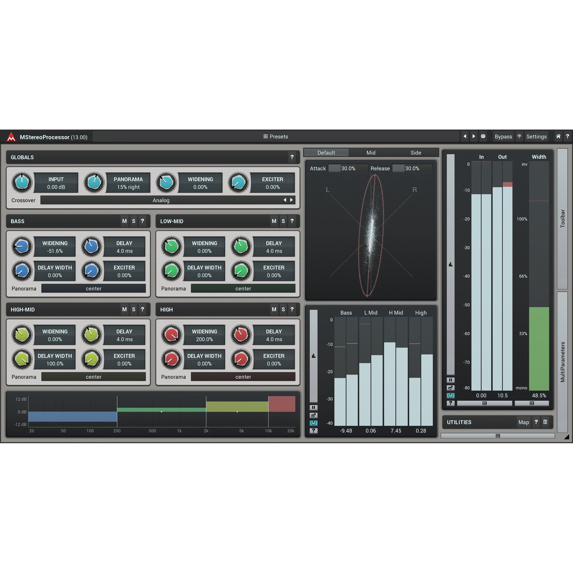 MStereoProcessor is an advanced mastering multiband stereo analyzer and enhancer plugin, which lets you easily control the stereo image and the necessary perception of depth and space.