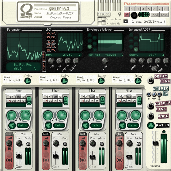 Ohm Force quad frohmage. Did you know that a filter could change your sound THAT much? Actually, it's not one filter but a creative filterbank with advanced modulation parameters. The possibilities are limitless; now, the question is whether you will feel creative enough. But we have no doubt about that.