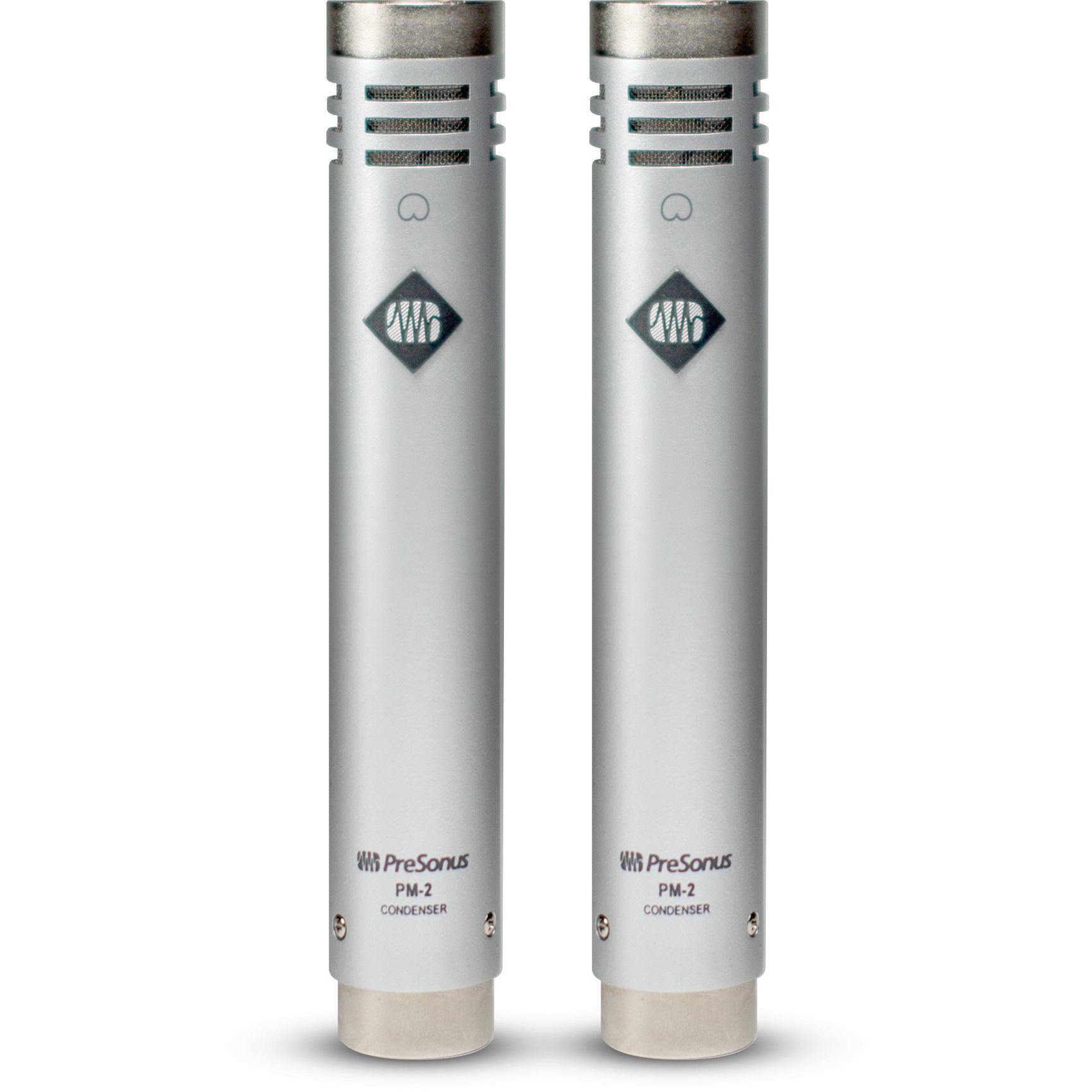 Sonically Matched for Precise Stereo Imaging. Ideal for stereo recordings of acoustic instruments, drum overheads, ensembles and more, the PreSonus PM-2 stereo microphone set provides the tools you need to create professional results. Each PreSonus PM-2 small-diaphragm cardioid condenser microphone is equipped with a ¾” gold-sputtered capsule housed in an ultra-light chassis, making it easier to perfectly position your microphones without fighting gravity. Sold as a sonically matched pair, the PM-2 comes equipped with a stereo bar for XY mic placement. PM-2 microphones can be used together or individually, making them an excellent addition for any home or professional recording environment.