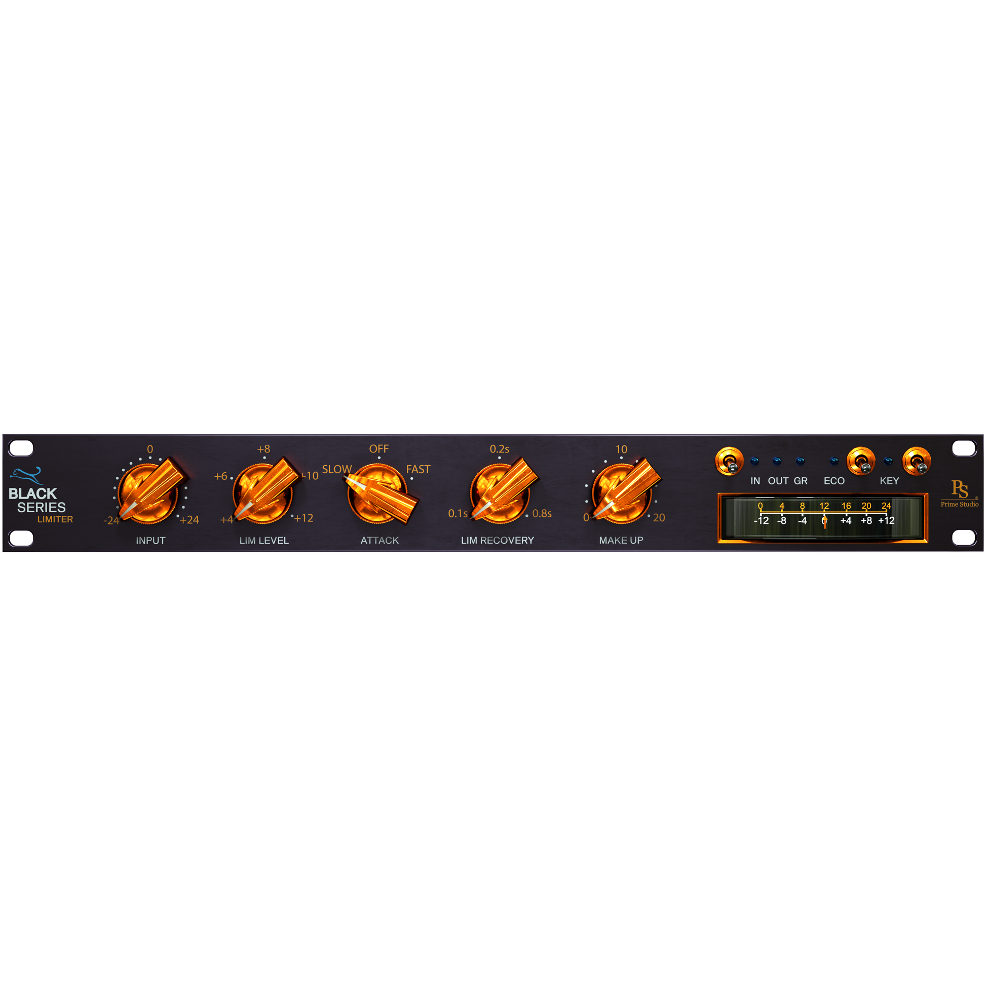 Prime Studio Black Series Limiter. Light on CPU usage Prime Studio Black Series Limiter serves you with highest sound quality. Want to get even lighter on CPU usage the you can do so by switching the ECO modus on which deactivates the harmonic preamp distortion sound of the input stage. A classical solid state limiter modelled after a famous vintage studio device out of the sixties offering ratio, threshold, attack, limit recovery and make up functionality. On board is a switchable meter for input level, output level and gain reduction control. Use the key switch to use sidechain functionality to fine tune the compression effect (AAX version only).