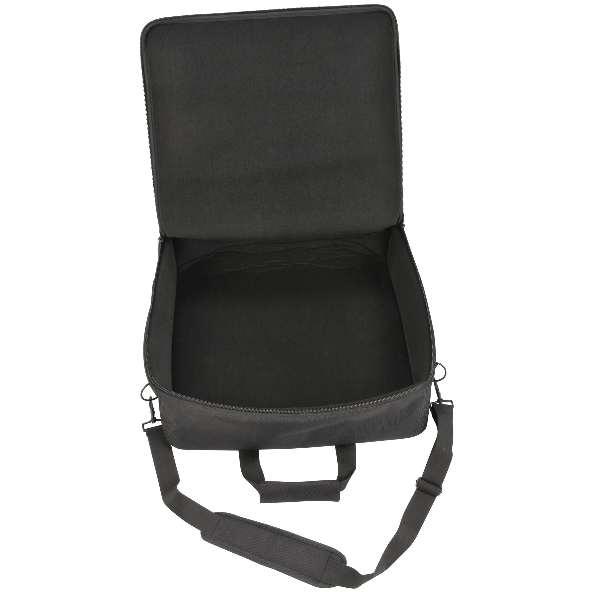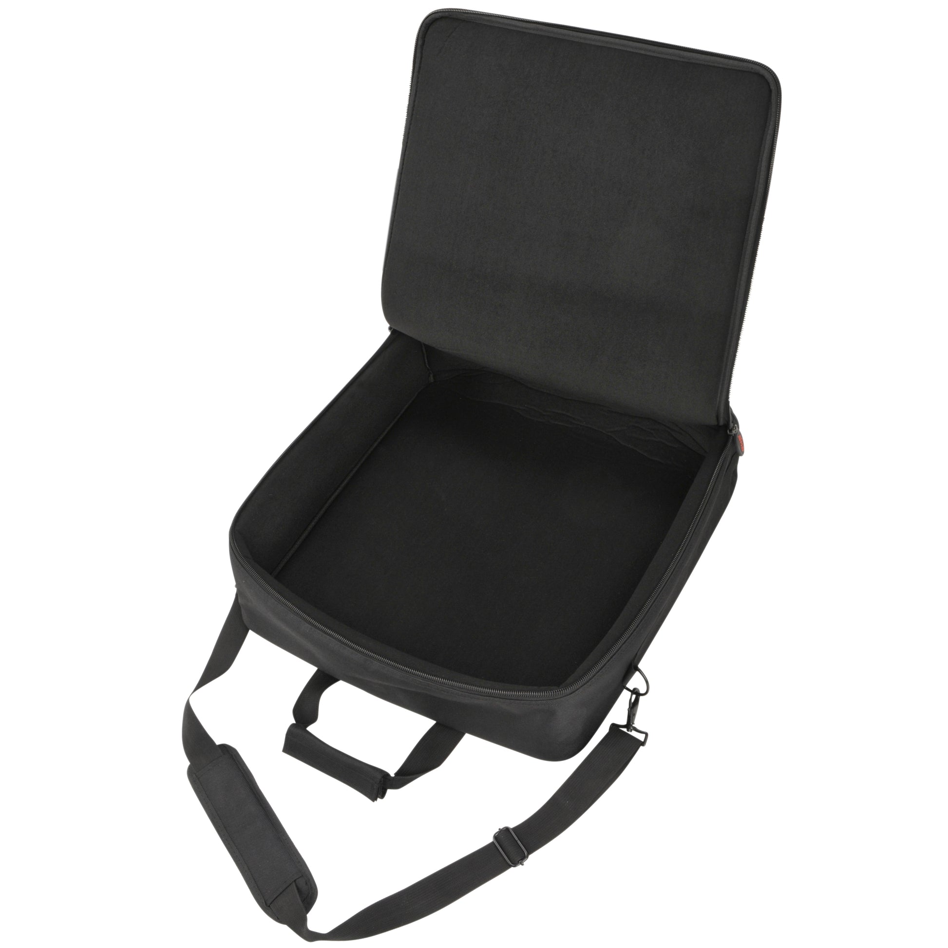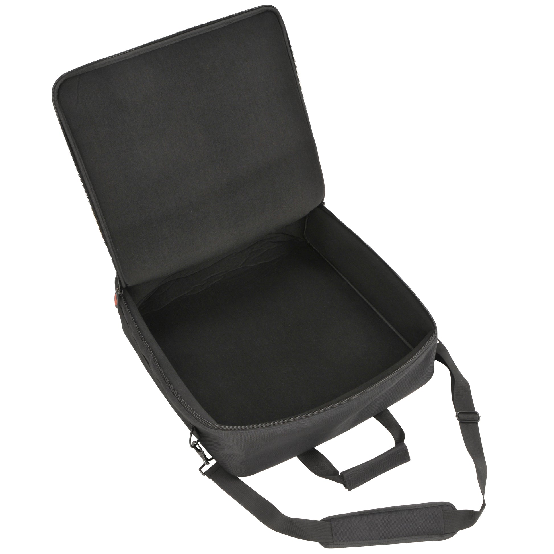 The Universal Mixer/Equipment Bag is constructed of a durable 600 Denier padded exterior with heavy-duty dual zippers, an adjustable, padded shoulder strap and double stitched carrying handle for added convenience. The bag includes a convenient, double zippered padded exterior accessory compartment that is large enough to keep your iPad protected while stowing cables or additional gear.