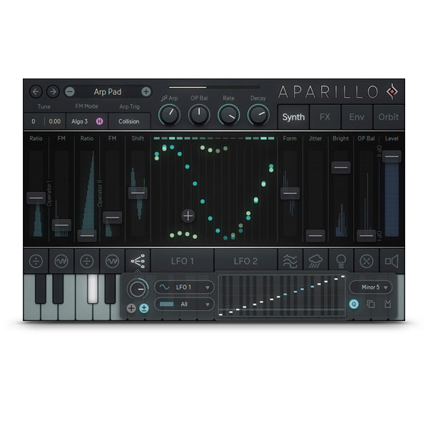 Synth. Two FM Operators give birth to waveforms so complex it's like they have a life of their own. Different FM Complexity/ and Ratio Modes, Waveshaping, Folding, Formant Shifting, Complex LFOs and the Orbiter deliver sonic spectacles that are sure to blow you out of your seat. A modulatable Scale editor creates unbelievable unison spreads with the deepest of harmonic structures, stacking up to a 16 voice orchestra from another planet.