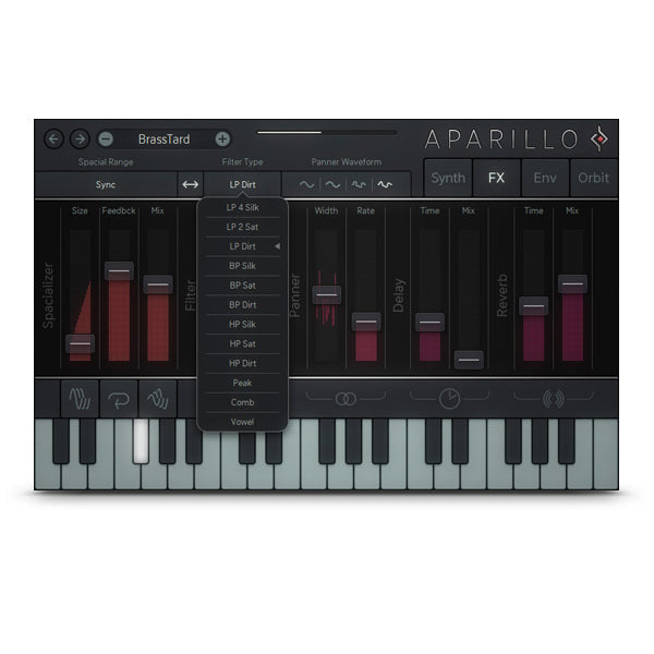 FX. The effect section is a sound source in its own right. The Spacializer, a delay-based pitch resonator, can generate an additional synth layer per wave-guide synthesis. Besides the typical specialties like Comb and Vowel, the Multi-Mode filter dishes up the super-evil Dirt HP/BP/LPs, that bubble over with spectral grit. The Poly-Autopan, synced Delay, and our best Reverb yet, will add space and air to your precious audio produce.
