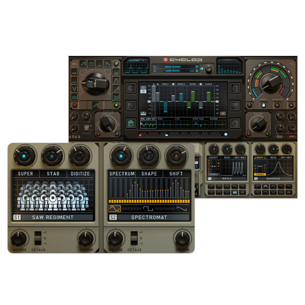 Cyclop. Twisted Bass: Pure madness at the low end of the spectrum. Monophonic, raw and unbelievably versatile. Cyclop is packed with tools for the bass of the future and beyond. Wobble Knob, FX Sequencer and a hilariously versatile sound engine will give you endless joy.