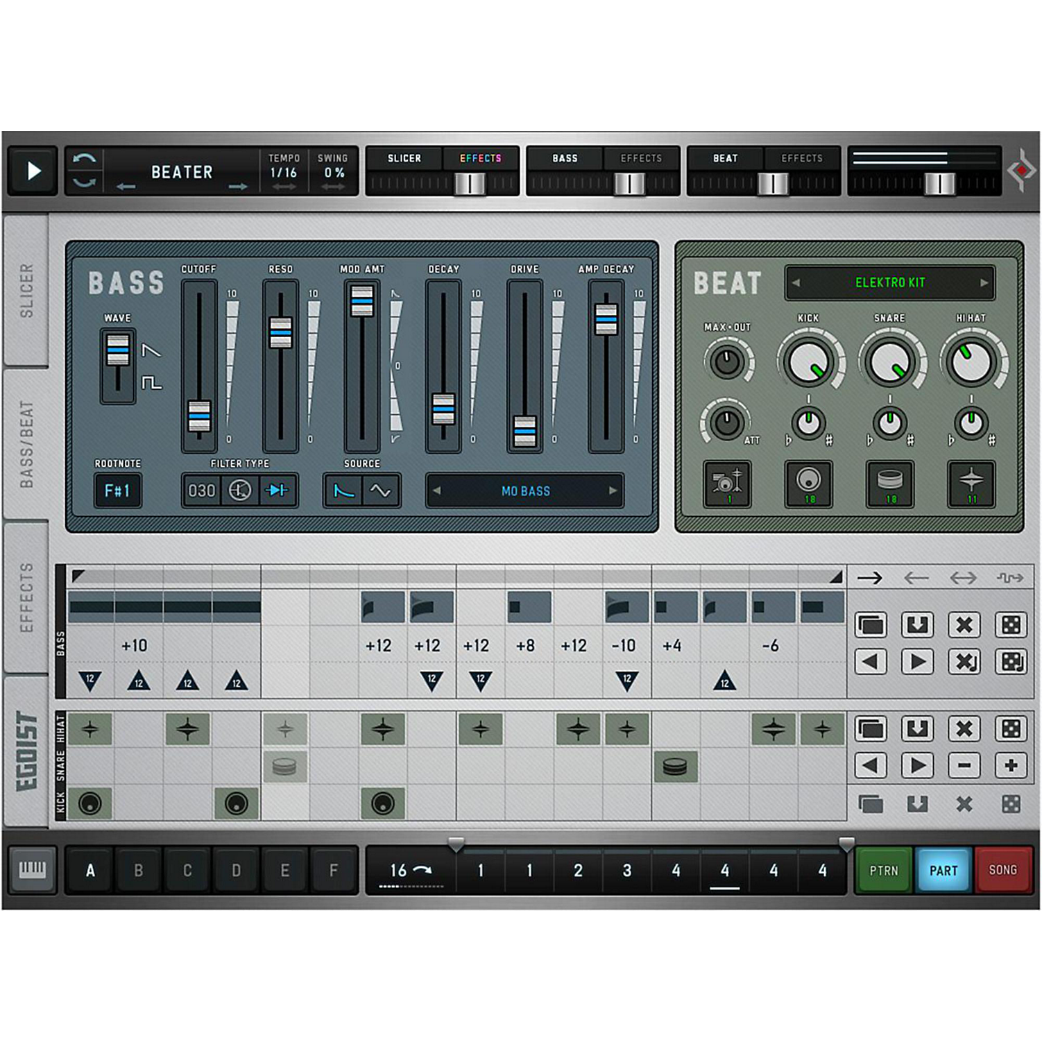 Egoist. Load any audio file and squeeze the groove out of it! Use samples or full songs as a sound source. Instant Groove. The onboard bassline, a drum machine and the multi-effect sequencer make Egoist the perfect track sketching tool in the studio and on the road. You’ll soon fall in love with its distinct features and concept.