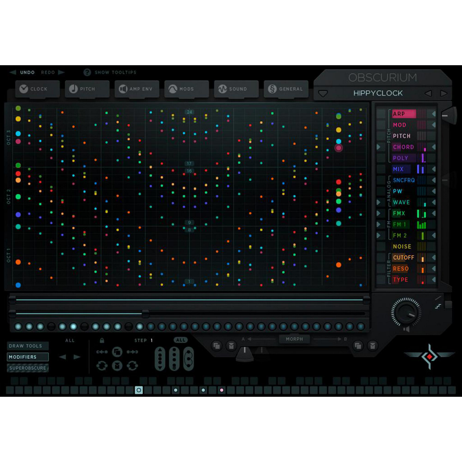 Obscurium. Productive Synthesis Tool with VST Hosting & Generative Pitch engine. Obscurium is a synthesis tool for sound and pitch. It feeds on your input of scales & chords to produce futuristic soundscapes and vivid harmonics.