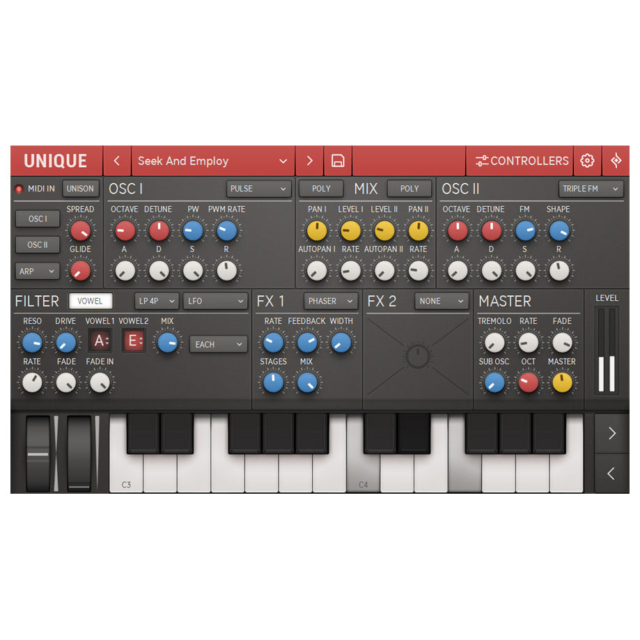 Unique. Virtual Analogue Synth keen on vocals. Unique specializes in state-of-the-art vowel sounds and mighty, mighty analogue sounds from the Golden Age of synthesizers. Her assertive sound should not be missing in any VST folder.