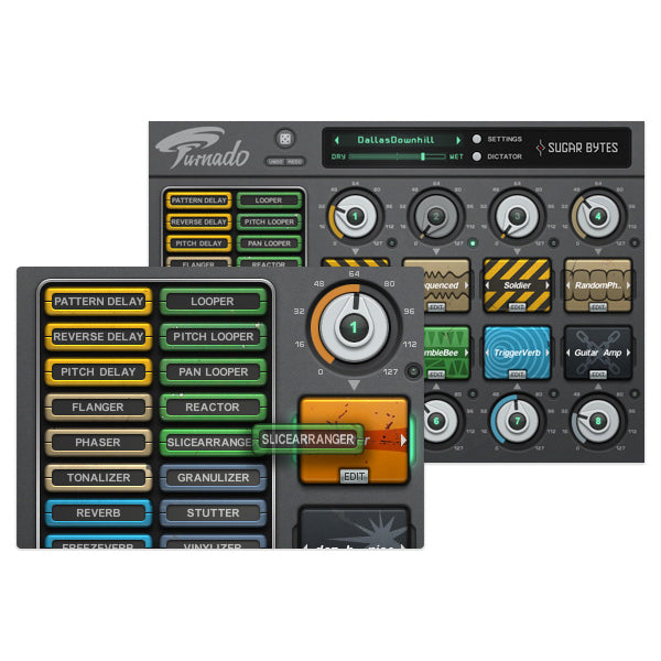 Sounds & Presets. Crafted for massive real-time audio Manipulation. With its instantaneous, one-knob, multi-parameter modulation features, Turnado will lay waste to the audio landscape. Giving you the power to crunch, chop, twist, mash and elevate your music to new levels, Turnado will have you creating wicked new sounds that will blow any crowd away. With instant access to eight effects and immediate control over key parameters, Turnado is guaranteed to cause devastation on the dance floor, shredding beats and crunking breaks to insane proportions.